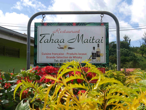 Le soir venu, nous allons donc chez Bruno et Marie. Marie est de père français et de mère polynésienne. Leur restaurant s’appelle « Tahaa Maitai », subtil jeu de mots rappelant l’expression « Tama’a maitai » qui veut dire « bon appétit ». Nous sommes arrivés les premiers et le restaurant s’est rempli peu à peu.