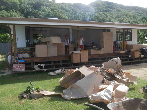 Arrivant sur la baie d’Avea, nous découvrons la maison de Fabienne et de Jean-Christophe. Ils ont enfin pu être livrés par container des équipements restants et s’apprêtent à déménager dans les prochains jours.