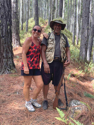 Nous acceptons son invitation à rejoindre le petit groupe composé de son cousin, de sa femme et de leurs deux jeunes enfants, de deux jeunes femmes du village voulant découvrir le lieu et du petit chien qu’Alphonse éduque à le suivre en montagne pour la chasse aux chèvres et aux cochons.