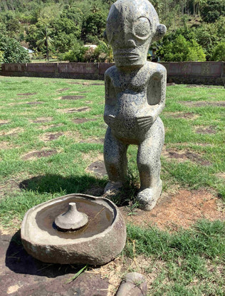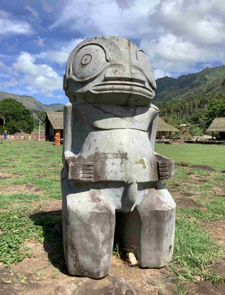 Certains ont vu dans ces messagers de pierre la manifestation d’une vie extra-terrestre - comme ce fut le cas pour les géants moais de l’île de Pâques ou des pétroglyphes de la Nazca - à cause de ces têtes surdimensionnées et ces yeux exorbités. Or, l’œil est justement l’organe le plus important pour le peuple marquisien. Comme dit dans l’article 39 de notre blog sur l’île de Tahuata, l’œil (mata) a une signification symbolique spécifique aux Marquises, qui se réfère aux ancêtres.