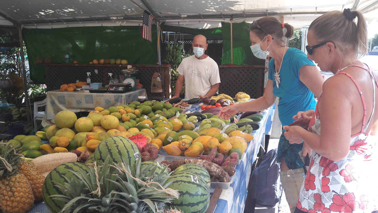 Pastèque, papayes, mangues, avocats, patates douces et bananes viennent remplir le panier de la ménagère.