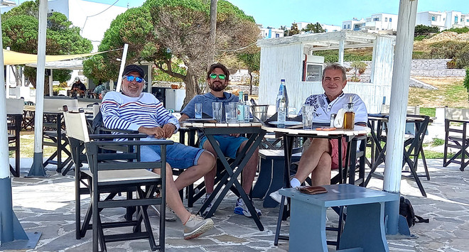Sitôt à terre, direction le petit supermarché où l'on trouve de tout pour un avitaillement nécessaire après quelques jours au mouillage. De quoi remplir le chariot sur les conseils avisés de Constantinos, car la lecture des étiquettes grecques avec son alphabet impénétrable reste toujours problématique.