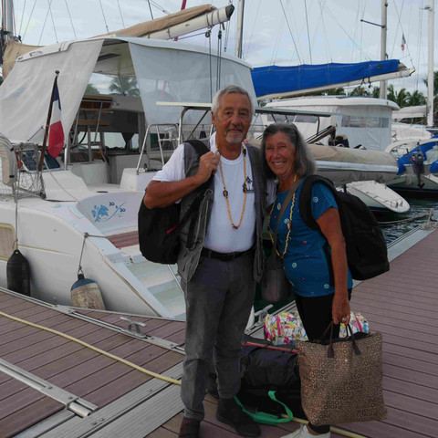 Ils arboraient ce collier le lendemain matin sur le quai pour aller prendre l’avion et rentrer en métropole, au bout de 3 semaines de parenthèse tropicale, à naviguer dans l’archipel de la Société…